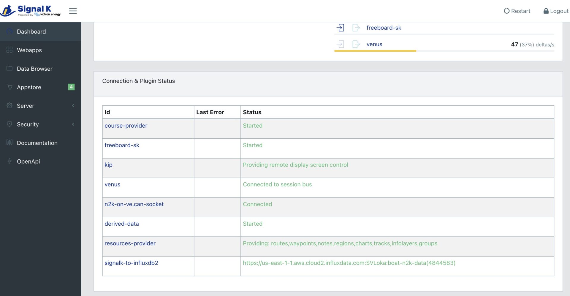 - Configure SignalK Server: There are a few steps to ensure SignalK is working correctly.